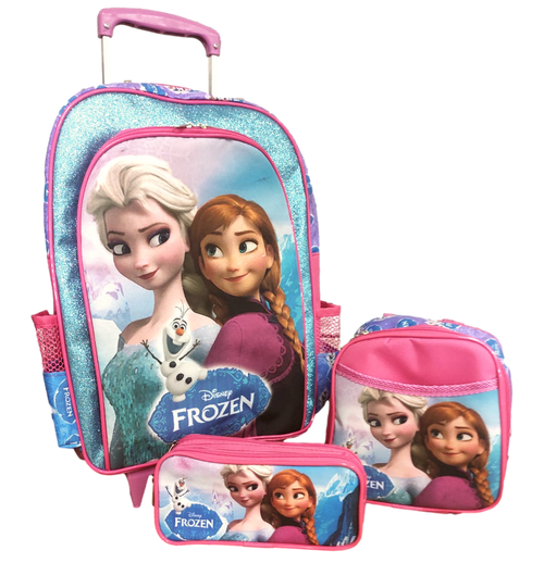 Conjunto de Mochila Frozen com 3 peças, design colorido de desenho animado