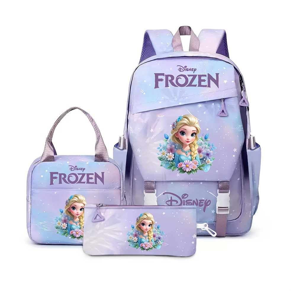 Conjunto de Mochila Frozen com 3 peças, design colorido de desenho animado