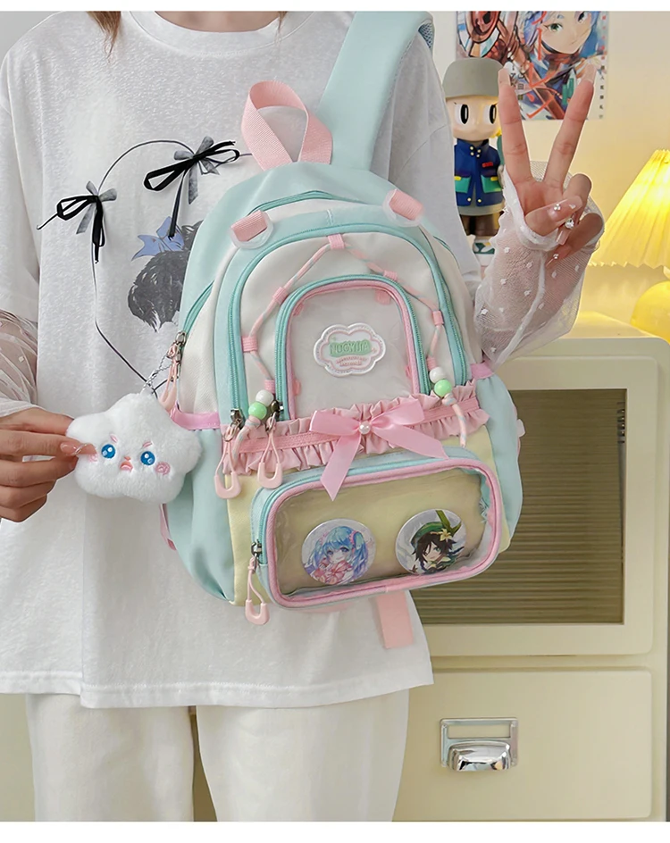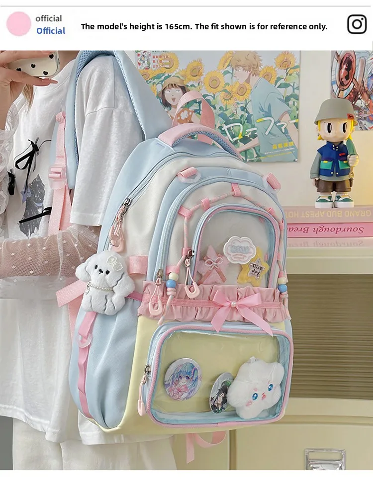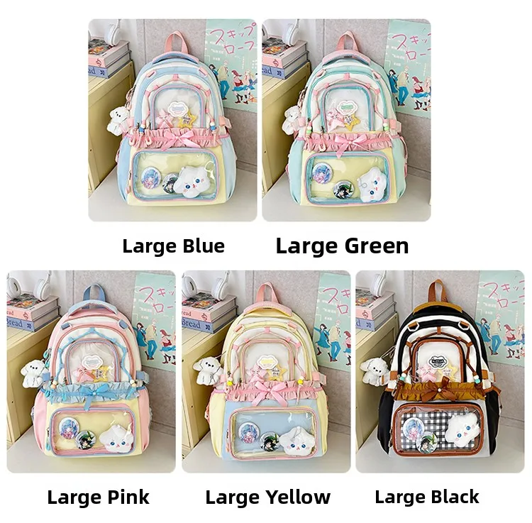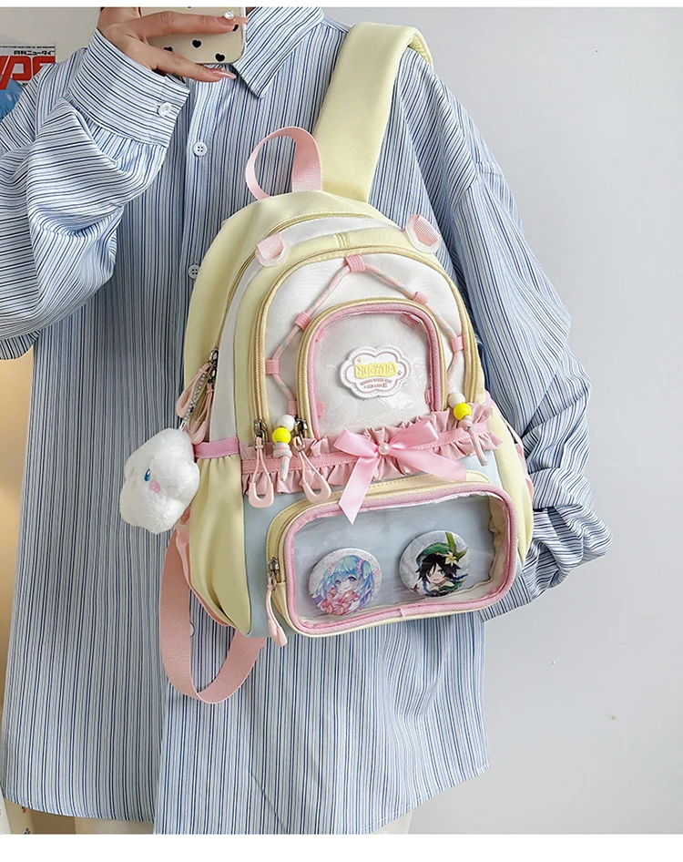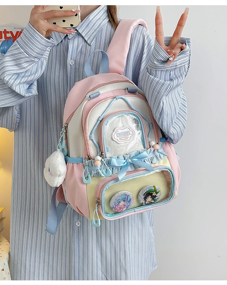 O estilo escolar e delicado desta mochila adiciona um toque de fofura ao seu visual, tornando-a uma das favoritas entre os estudantes.